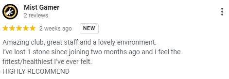 "I have lost over 2 stone. My workouts really help with stress from work. I am so much fitter and stronger."